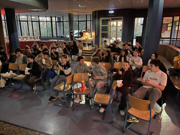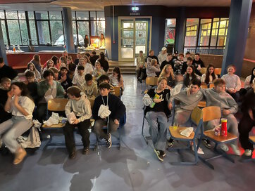 Die Schlange vor dem Eingang füllte sich - einige Schülerinnen und Schüler hatten noch die Chance der Abendkasse kurzfristig genutzt - und dann konnte der Film pünktlich um 18:00 Uhr beginnen. Wie schon bei den letzten Malen war die Stimmung ausgelassen und fröhlich. Der Spaß und die gute Laune standen im Vordergrund und so wurde nebenher auch viel gequatscht und gelacht, die Popcorn-Maschine war im Dauereinsatz und am Ende konnten alle zufrieden nach Hause gehen.