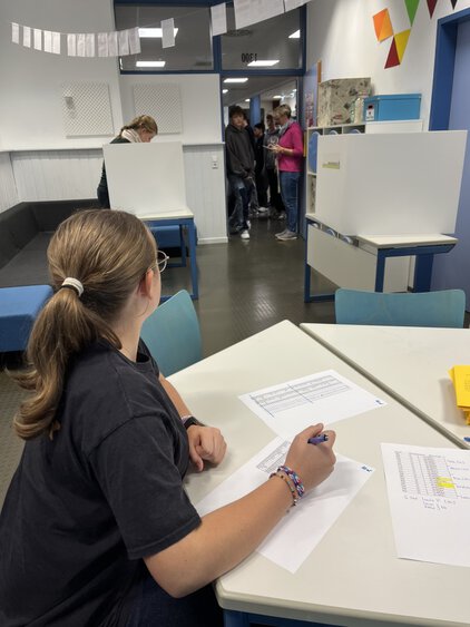 478 Schülerinnen und Schüler sind an der Realschule in diesem Schuljahr wahlberechtigt. 434 von ihnen kamen klassenweise in das Wahllokal bzw. den SV-Raum und konnten ihre Stimme abgeben. Die Wahlbeteiligung hat damit eine Quote von 91% erreicht. Zur Wahl standen 4 Kandidatinnen und Kandidaten aus der 10. Klasse.