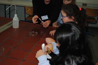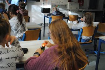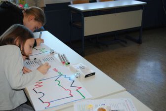 Zu dem Schnupperunterricht zählten sowohl die für die Viertklässler neuen Fächer wie Chemie, Physik und Französisch als auch bekannten Lernbereiche wie Kunst und Englisch. Auch in die weiteren Schwerpunkte des Schulprogramms konnten die Schülerinnen und Schüler hineinschnuppern, wie etwa das Arbeiten mit den Minirobotern Ozobot oder das kreative Gestalten mit Ton.