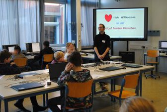 Auch die Eltern konnten sich bei einer Führung durch das Gebäude einen Eindruck von der Realschule machen und weitere Einblicke in die pädagogischen Arbeit der FNR gewinnen. Die Schüler*innen und Eltern trafen sich am Ende der Programmpunkte bei Waffeln und Kuchen wieder und konnten die Gelegenheit nutzen, mit den Kolleginnen und Kollegen ins Gespräch zu kommen.