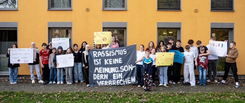 Am Donnerstag war der Kamener Bahnhof für alle der erste gemeinsame Treffpunkt. Um kurz nach 8 Uhr ging es mit öffentlichen Verkehrsmitteln erst nach Bergkamen und dann mit einem bestellten Taxibus direkt zur Ökologiestation Bergkamen. Dort erwartete uns gleich ein netter Referent im Gemeinschaftsraum, der mit uns einen interaktiven Workshop rund um das Thema Diskriminierung und Rassismus durchgeführt hat. Viele gute Beiträge, persönliche Schilderungen und viel Engagement der Schülerschaft haben diesen Vormittag insgesamt sehr wertvoll gemacht. Die Arbeitsergebnisse in Form von Plakaten und Transparenten lassen die Wirksamkeit der vielen Impulse deutlich erkennen. Der Workshoptag wurde dabei von der TalentMetropole Ruhr gefördert. Nach einem gemeinsamen Mittagessen ging es am Nachmittag weiter mit konkreten SV-Projekten. Viele gute Ideen brauchen immer auch Raum für Planung und Gestaltung und im Schulalltag bleibt dafür meist sehr wenig Zeit.