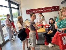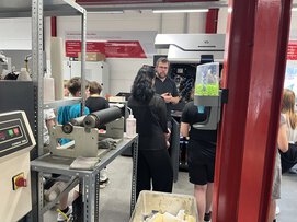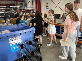 Unterstützt wurden die Lehrkräfte Fr. Gödecker und Fr. Krönert von der Umweltberaterin der Verbraucherzentrale Kamen Frau Eikelpasch. Zudem konnte die Schülerinnen und Schüler beim Besuch einer Druckerei Profis bei der Arbeit mit dem Werkstioff Papier über die Schulter schauen.